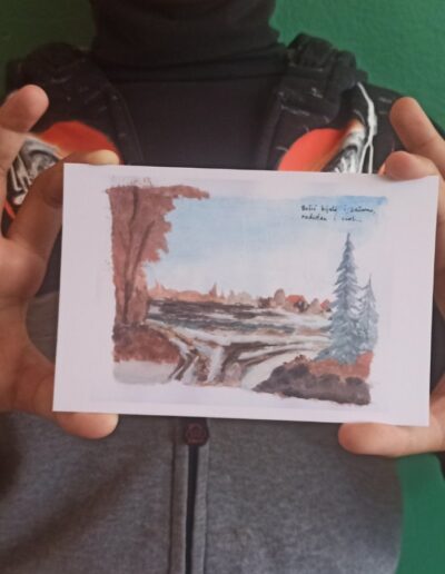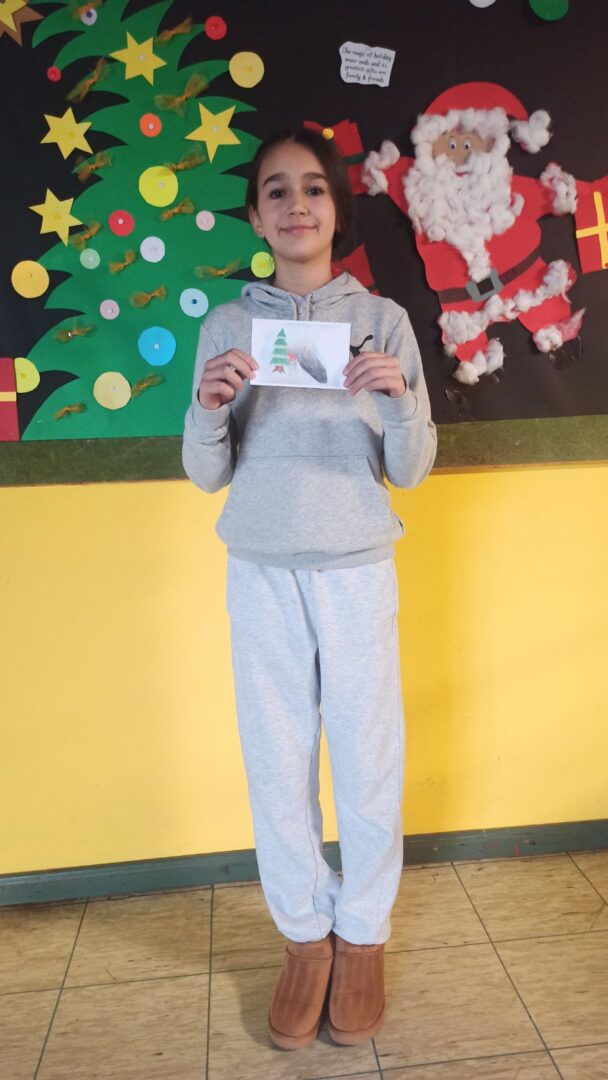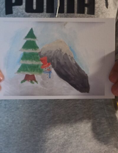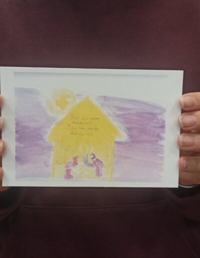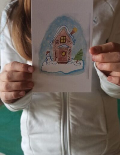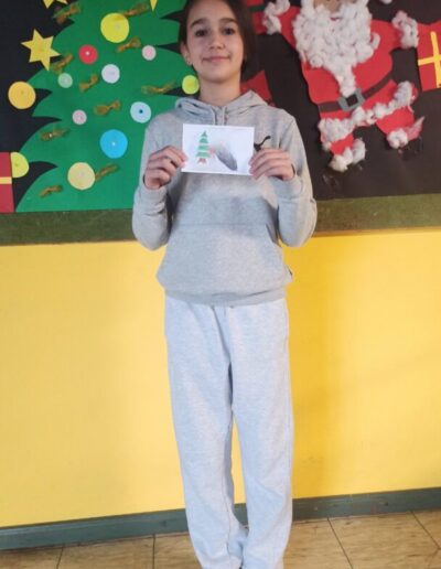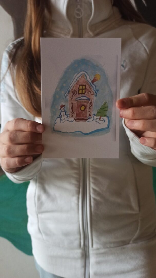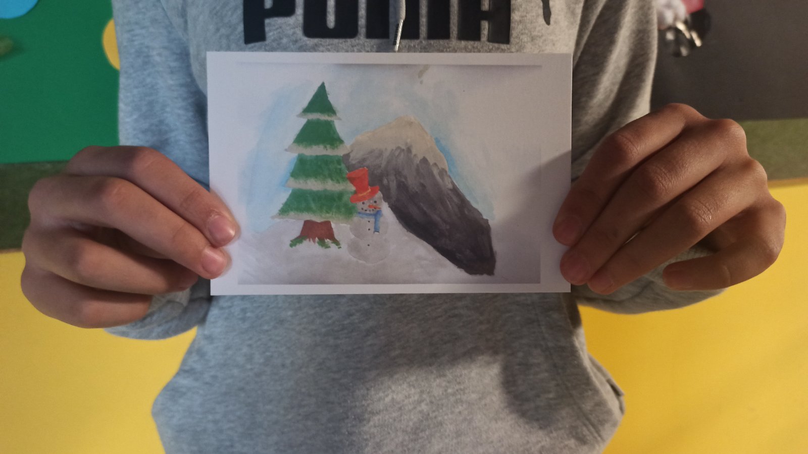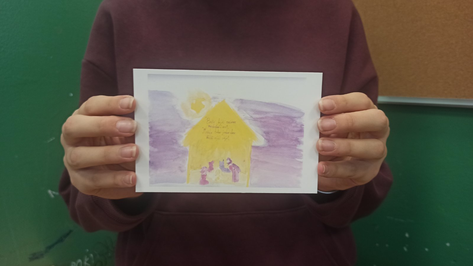 Učenici petih i šestih razreda su na likovnoj grupi uz vodstvo učiteljice Anje Serdar izradili božićne čestitke u tehnici akvarela. Čestitke su vrlo maštovite i kreativne. Tijekom rada učenici su se pokazali kao vrlo vrijedni, marljivi i prije svega originalni stvarajući nježne i jedinstvene blagdanske motive. Najbolji radovi su se skenirali te su poslani na tiskanje gdje su pretvoreni u prave razglednice koje se mogu poslati poštom kao poseban i osoban blagdanski pozdrav. Razglednice su dostupne za kupnju na izložbeno-prodajnom štandu naše škole.