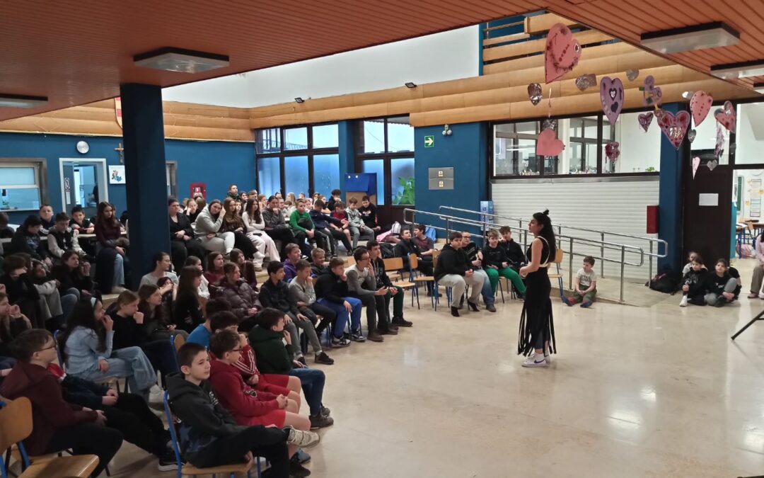 U holu naše škole 20. veljače održan je glazbeno-dramski recital „Dar“ u izvedbi umjetnice Nere Stipičević (Freeda Nera Immortele). Program se sastojao od dramsko-glazbenog recitala i zanimljivog razgovora s učenicima te je učenicima pružio priliku za razmišljanje o vlastitim talentima, snovima i životnim izborima.