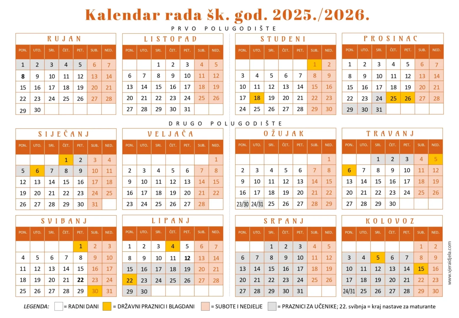 Praznici u 2025./2026. raspoređeni su na sljedeći način: