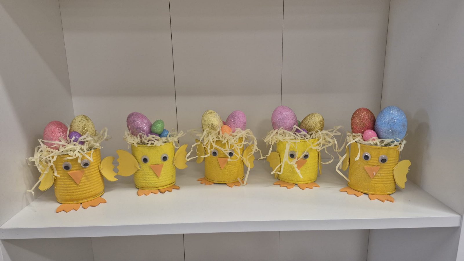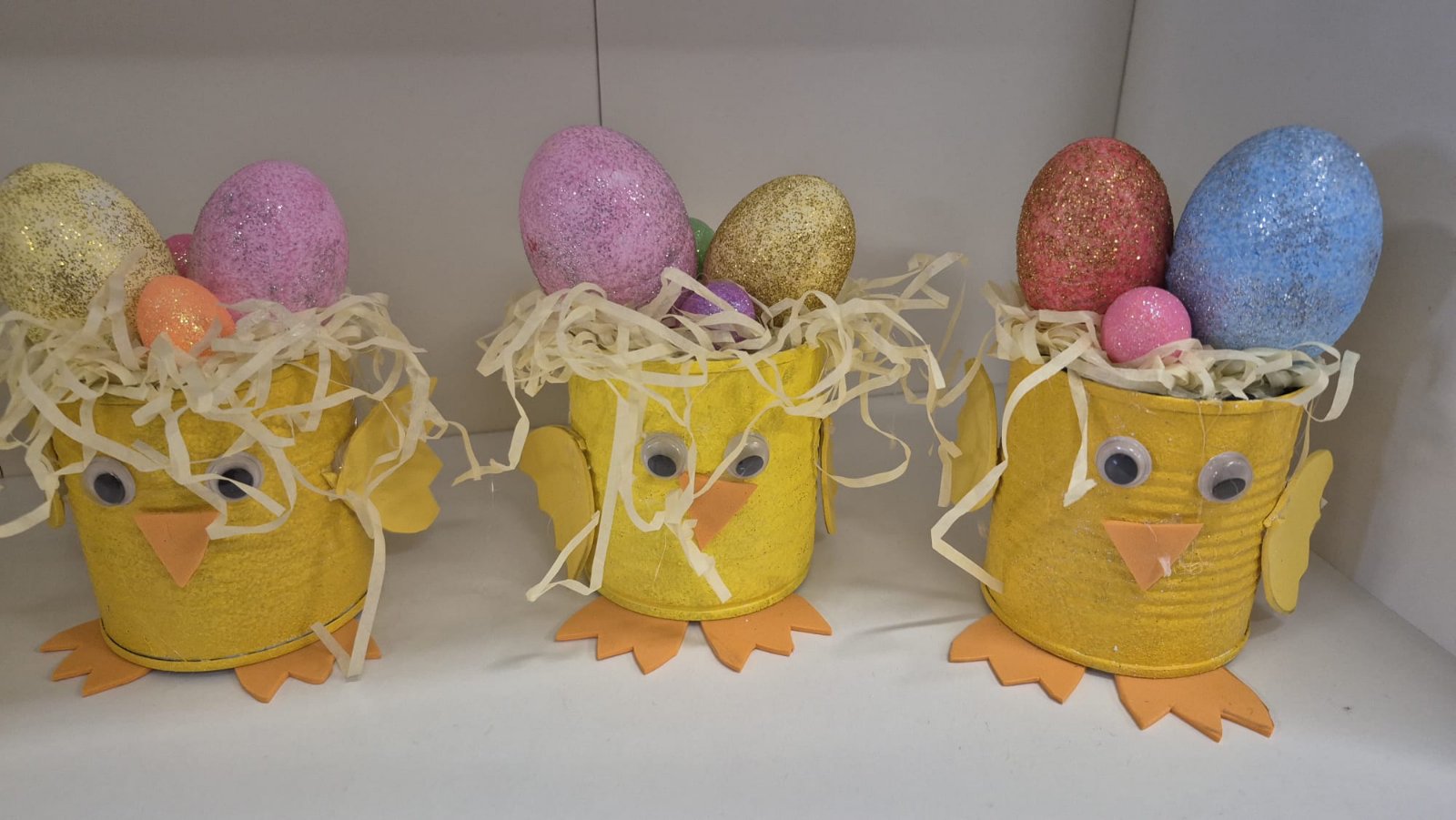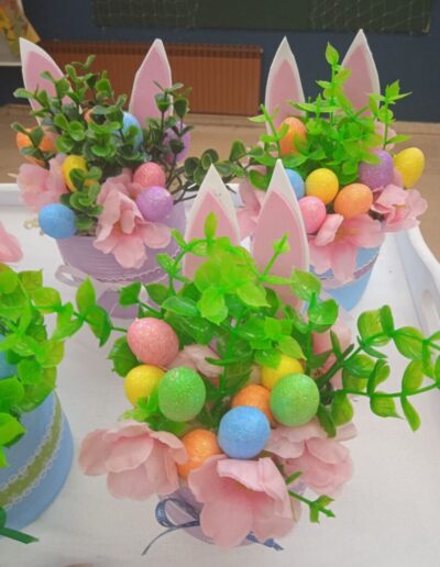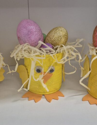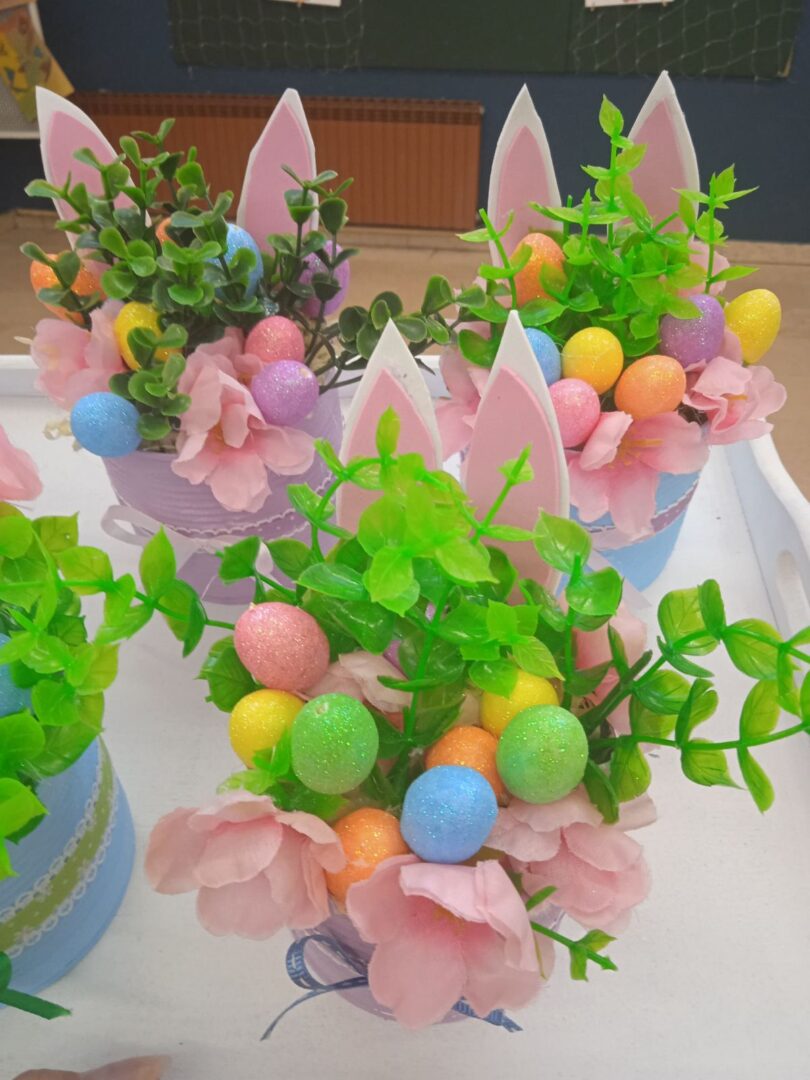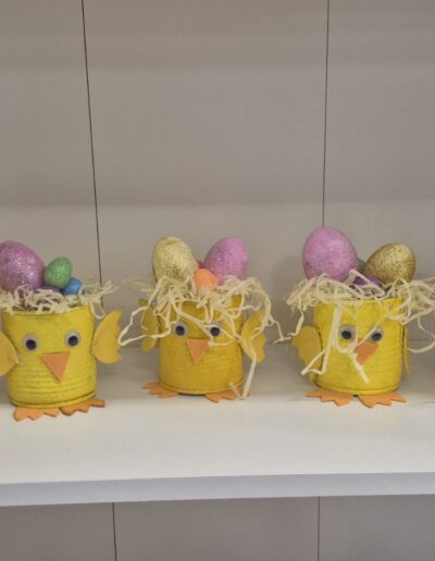 Mali žuti pilići sa pisanicama nastali su od recikliranih konzervi kao i veći aranžmani sa pisanicama i cvijećem. Uz poduzetnički duh, brinemo i o okolišu. Sve što možemo ponovo upotrijebiti važno je iskoristiti i prenamijeniti za neku drugu svrhu. Mi zadrugari to jako dobro znamo!